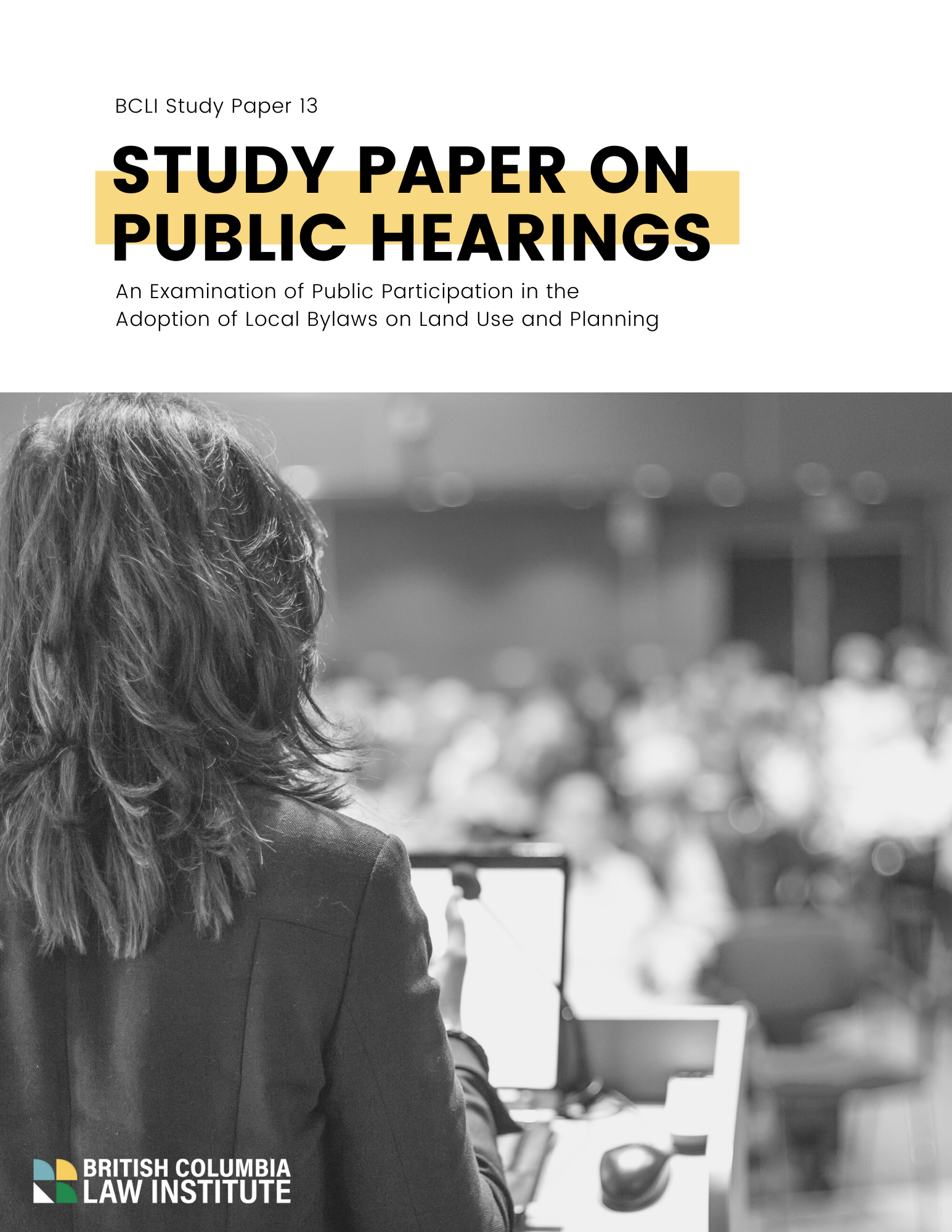 The BCLI is pleased to publish its Study Paper on Public Hearings. This study paper provides a comprehensive overview of British Columbia’s public hearings law and lays the necessary groundwork to initiate law-reform projects to determine how public hearings could be transformed to better serve communities in BC.
