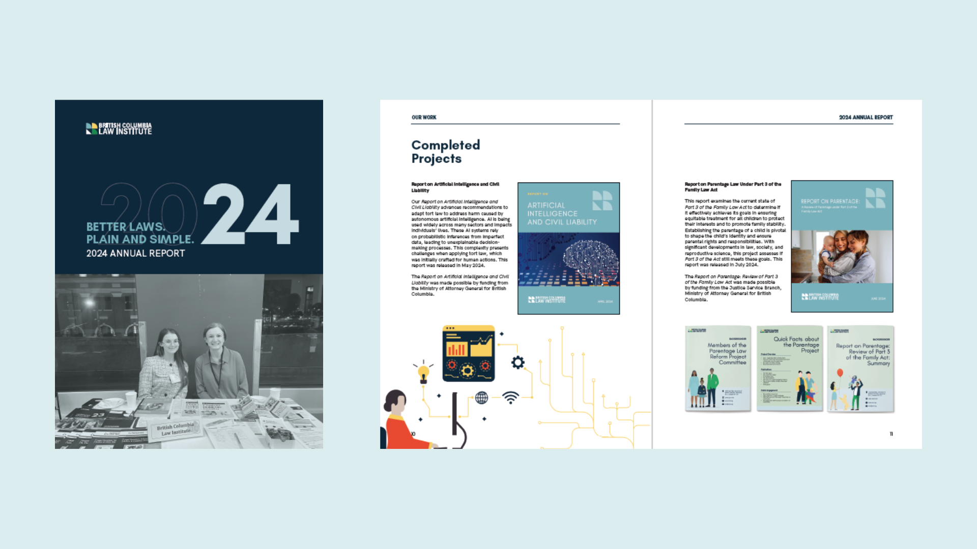 We’re pleased to share BCLI’s 2024 Annual Report, showcasing a year of innovative law reform and forward-looking initiatives. Guided by our 2023 strategic plan and its five key pillars, this report highlights our ongoing commitment to collaboration, clarity in the law, just and innovative solutions, and expanding access to justice.